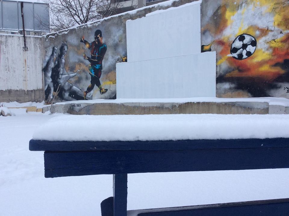 Το γήπεδο μετά τις χιονοπτώσεις στις 8 και 9 Ιανουαρίου.