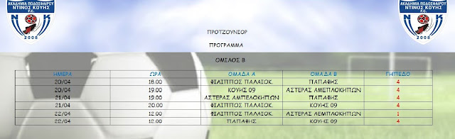 Το πρόγραμμα των αγώνων για κάθε τμήμα έχει ως εξής: